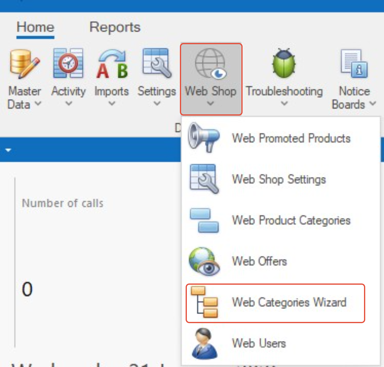 If you used the Web shop categories wizard to set up your web shop product categories, the wizard automatically added new imports to your Imports menu.
