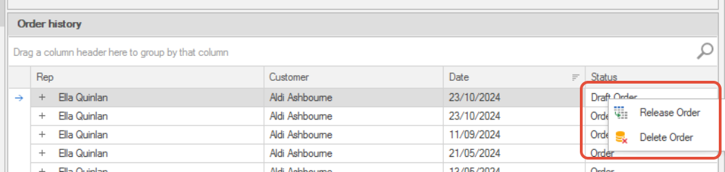 - Right-click on the Draft Order and select Release Order when you're ready.
