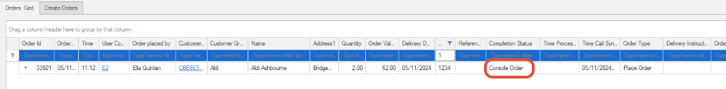 You can now find the order in the Orders Grid with a completion status of Console Order.