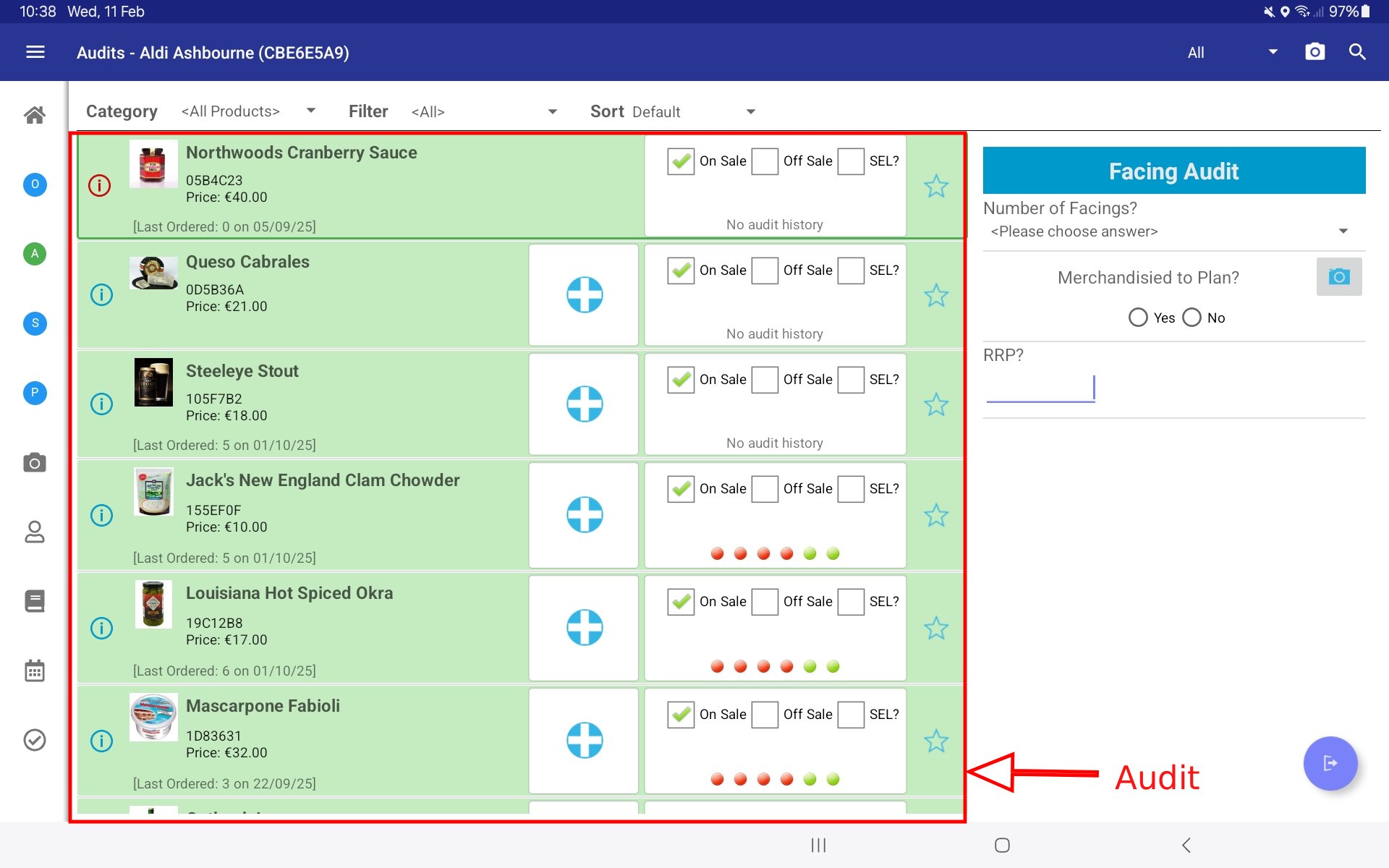 A list of products will appear for auditing.