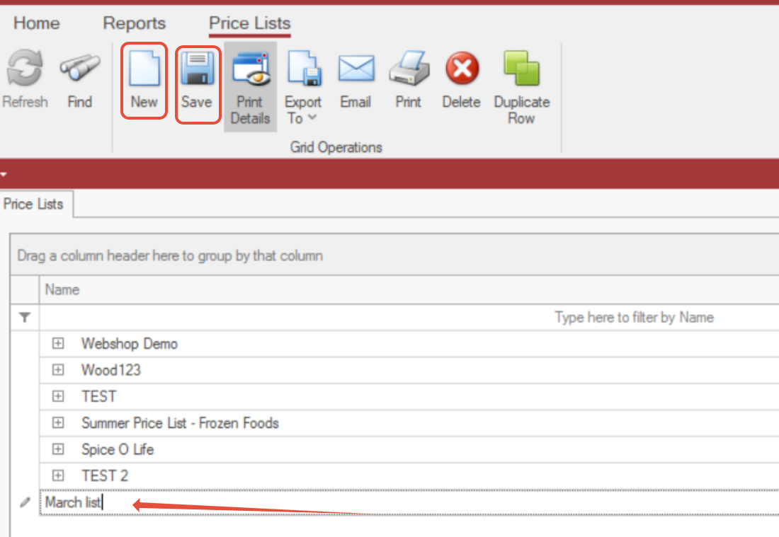 Creating a New Price List