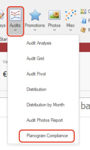 To view planogram data captured in the field, navigate to Reports > Audits >Planogram Compliance.